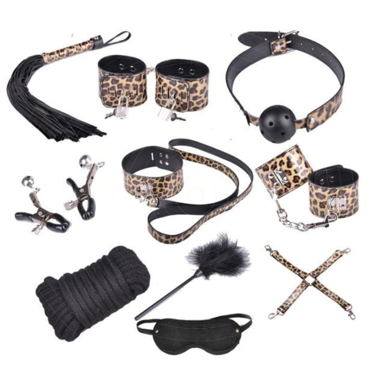 Bộ dụng cụ bạo dâm kích thích cực mạnh với hoa văn báo đốm mô tả cảm hứng như đang trói và hiếp dâm một con thú vật hung dữ. Cho bạn cảm giác kích thích thị giác cực mạnh với bộ dụng cụ gồm 10 món sẽ mang lại nhiều tư thế quan hệ tình dục cực đã cho cả nàng và chàng. Cảm giác như đang chinh phục khống chế một nô lệ tình dục sẽ khiến nàng sẽ như một nô lệ thật sự bị bạn hiếp dâm không cách kháng cực.